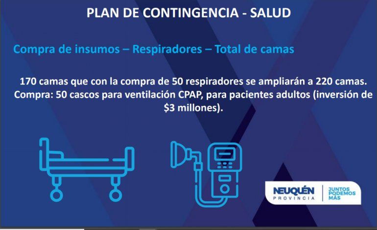 Asu vez se compraron 170 camas, 50 respiradores y 50 cascos para ventilación CPAP, para pacientes adultos y se decidió la aquellas cirugías programas que no sean urgentes.