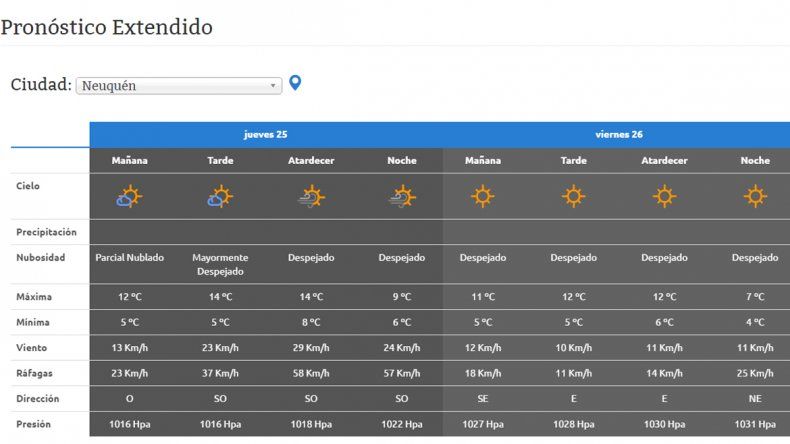 Durante el feriado por el 25 de Mayo, la Autoridad Interjurisdiccional de las Cuencas informó que en Neuquén se espera una jornada con cielo mayormente despejado con temperaturas que variarán entre los 5 y los 14 grados.