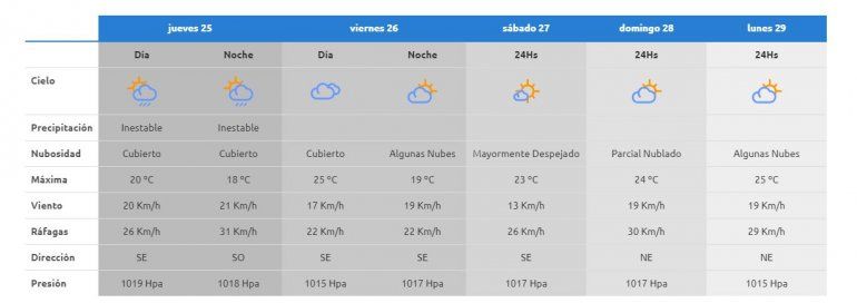 Desde el ente meteorológico prevén buenas condiciones, el cielo estar mayormente despejado, con algunas nubes y una máxima de 24 grados en el Alto Valle. El viento se intensificará durante la tarde, con ráfagas de 40 kilómetros por hora, lo que podría generar algo de inestabilidad durante la noche.