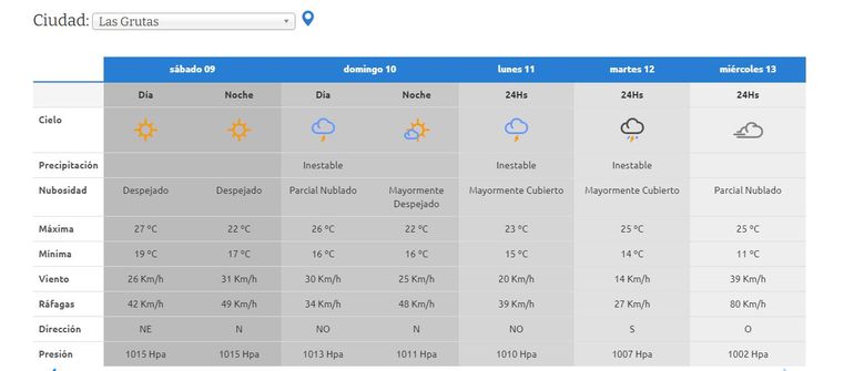 El lunes se repite este escenario con tiempo inestable, algunas nubes y posibles lluvias. La máxima seguirá en alza y rozará los 30°C. El martes vuelve el viento a la región con ráfagas de hasta 55 kilómetros por hora.