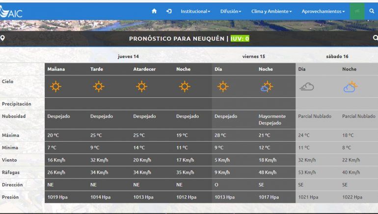 Desde la Autoridad Interjurisdiccional de las Cuencas (AIC) informaron que prevalecerá el buen tiempo y las temperaturas agradables para el fin de Semana Santa en el Norte de la Patagonia con temperaturas en ascenso, con viento de débil a moderado.