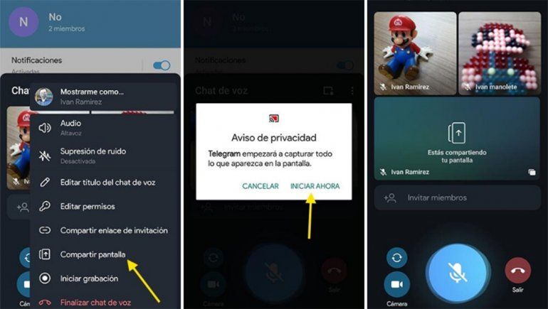 Grabar una videollamada de Telegram