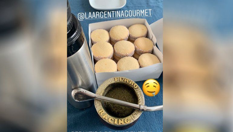 En la otra historia, siempre en la vivienda del crack zapalino y bajo los títulos "La Argentina Gourmet" y "Permitidos de Cuarentena", se aprecian alfajores de maicena criollos, un termo y un mate con los nombres de Ferro y Racing, clubes donde jugó el volante de la selección en el fútbol grande de nuestro país. Es decir, una jornada en la que se dieron un par de gustitos para dar una tregua a la dieta estricta que cumplen los futbolistas.