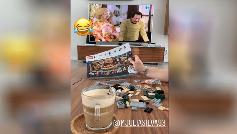 En una de ellas, se observa una mesa con un café con leche, un juego Ledo y de fondo la tele con imágenes de "Casados con Hijos", el clásico, siempre divertido y exitoso programa argentino protagonizado por Florencia Peña y Guillermo Francella, entre otros.