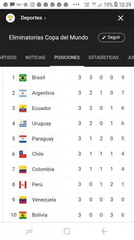 De esta manera, Brasil suma nueve puntos y le sacó dos unidades a la Selección Argentina, en tanto que después de estas tres fechas iniciales hay tres selecciones que todavía no ganaron: Perú, Venezuela y Bolivia.