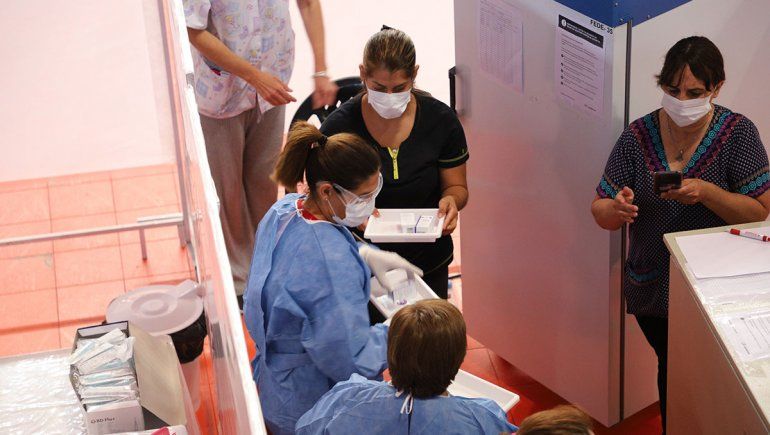 Con ambos celestes, cofias y protectores faciales, el personal de vacunación recibía a los pacientes, que se sentaban en cinco sillas plásticas dispuestas con distancia. La mayoría de los vacunados vestían ambos de colores, ya que estaban cumpliendo tareas en algunos de los centros de salud.