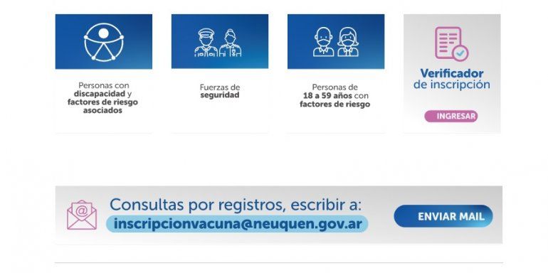 Desde este lunes, los adultos de 35 a 59 años con o sin factores de riesgo se pueden anotar a través de la página del ministerio saludneuquen.gob.ar. También está vigente el registro para mayores de 60 años, personas de más de 18 que cursen un embarazo, quienes tienen alguna discapacidad y trabajadores de hospitales y clínicas.