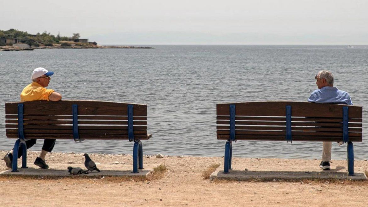 A la orilla de la playa, en Atenas (Grecia), dos amigos hablaban a distancia sobre las cuestiones referentes a lo dejará esta pandemia en el mundo.