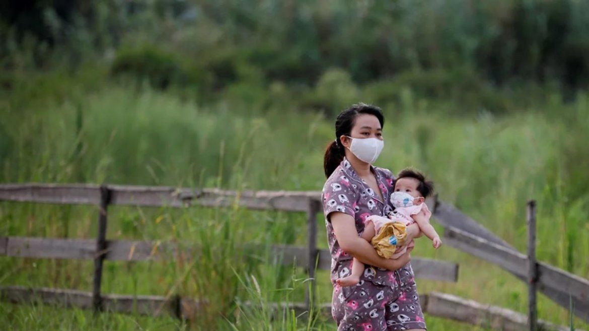 El tapaboca o barbijo en todas partes del mundo es el principal aliado. En Vietnam, una mamá con su hijo en la calle. O en Colombia, el particular modelo de este vecino de Bogotá.