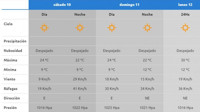 El lunes se registrará un aumento de la temperatura en toda la región. En Neuquén, el día del esperado recital de Abel Pintos en el escenario de la Confluencia, el cielo estará despejado y la máxima será de 30 grados. La AIC señaló que habrá viento leve del noreste, con vientos de 19 kilómetros por hora.