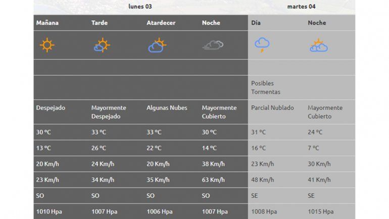 Mañana, según el pronóstico, el cielo se mostrará parcialmente nublado, con ráfagas de 43 kilómetros. La máxima será de 32 grados, hasta donde llegará el termómetro desde los 5 grados que se anticipan de mínima.
