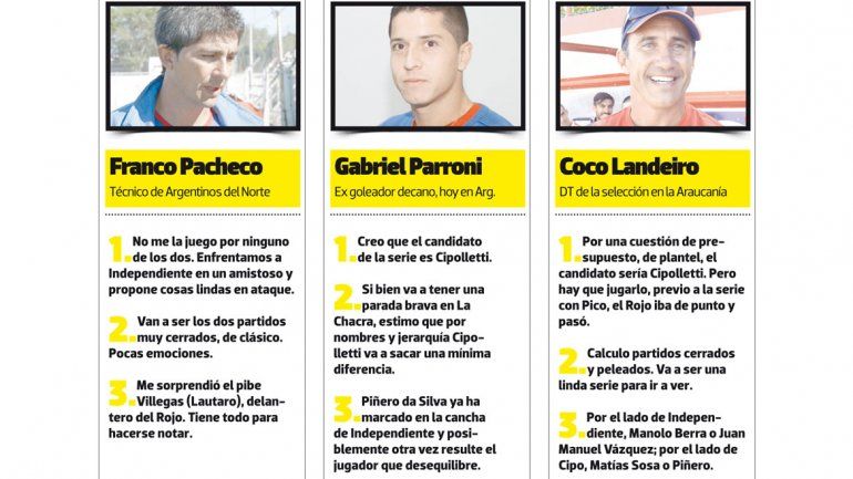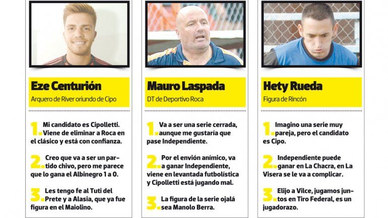 Se viene una apasionante serie por Copa Argentina entre Independiente y Cipolletti que mantiene en vilo a los futboleros de uno y otro lado del puente. Fiel a su estilo, LMN le pone color y mucha pasión a la previa, con producciones como la encuesta que ilustra esta página.