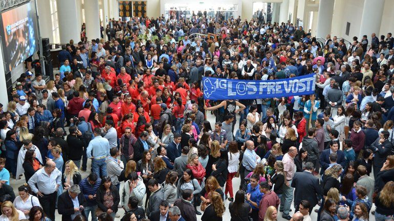 A las 10, hora anunciada para la alocución, decenas de banderas azules se levantaban en el aire y un suave murmullo recorría el hall. Las charlas y las rondas de mate se cortaron una hora después, cuando Gutiérrez se acercó a las barandas de la planta alta para ofrecer un saludo que fue recibido con una ovación.