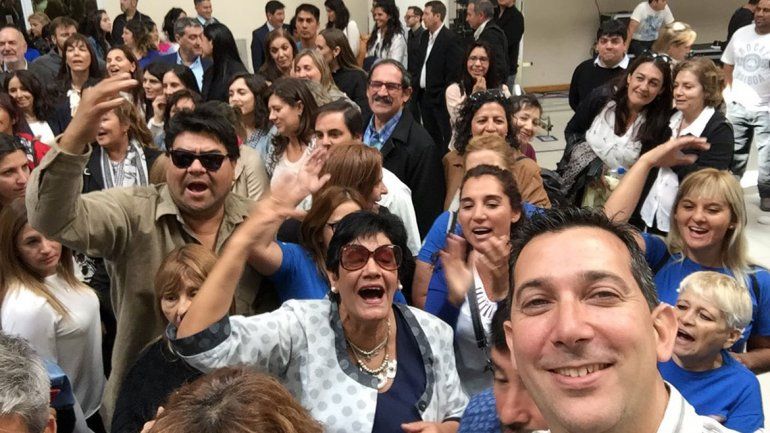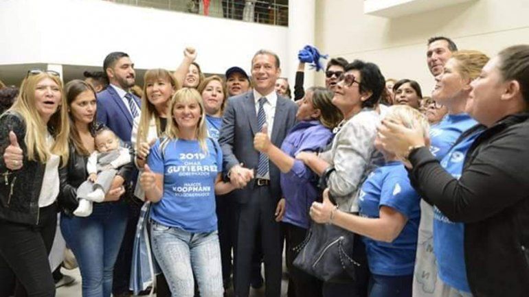 Pero el principal apoyo a la reelección del gobernador llegó después del discurso, cuando Gutiérrez salió del recinto seguido por un nutrido grupo de mujeres de remeras azules, que entonaban cánticos improvisados por la diputada Gloria Sifuentes.