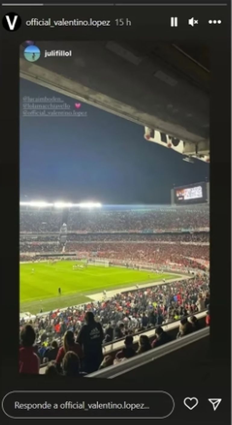 Es que en lo que fue el encuentro del pasado jueves entre River e Instituto, Valentino López fue a la cancha acompañado de Julieta Filliol. Sí, la nieta de Ubaldo el Pato Filliol, el arquero que no sólo supo brillar en el Millonario, sino que también en la Selección Argentina, al punto de que se consagró como campeón del mundo en 1978.