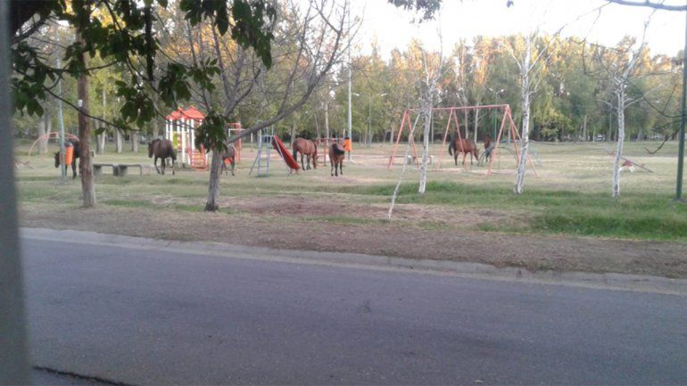 En Neuquén, una plaza fue el barrio Río Grande fue visitada por una tropilla, y los vecinos del sector captaron el momento con sus cámaras. Según contó uno de ellos a este medio, los caballos (unos siete) provenían de la calle Río Senguer y luego se desviaron por Chaneton, para después permanecer un largo rato en la plaza del Parque Durán.