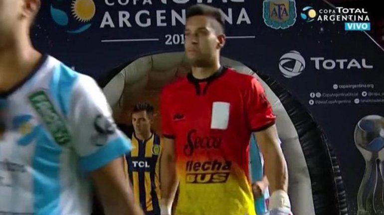 Así, el portero del elenco rionegrino tuvo que recurrir a la utilería de Colón, quienes les prestaron una camiseta del club a la que hubo que taparle el escudo y colocarle el número.
