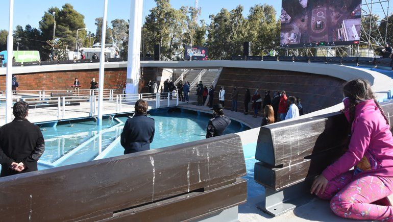 Tras la bendición del espacio público por parte del obispo y el corte de las cintas, las miradas se centraron en el área cívica, donde se izaron las banderas en los tres mástiles y se descubrieron las placas en homenaje al religioso. Gaido afirmó que Neuquén pretende convertirse en la capital de los derechos humanos y aclaró que el nuevo parque lleva el nombre de De Nevares porque en el sector intramuros de la cárcel había una pequeña plazoleta bautizada de esa manera.