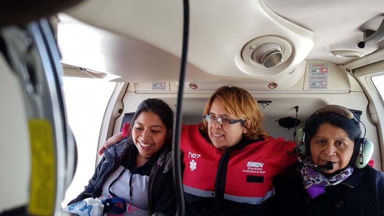 El segundo helicóptero (uno pertenece a la Provincia y el otro al Ejército), en el que viajaba el ministro de Ciudadanía Gustavo Alcaraz, participó en la evacuación de Belén Tripailaf que se está embarazada y había comenzado con contracciones en las últimas horas. La joven futura mamá, de 25 años de edad, fue trasladada hasta Junín en buen estado de salud.
