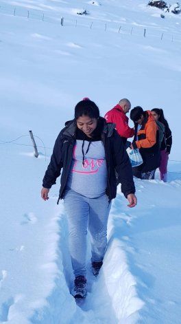 Este lunes al mediodía, uno de los helicópteros visitó las comunidades Linares y Aucapán, debido a que se encuentra intransitable el acceso por tierra por el temporal de nieve y frío.