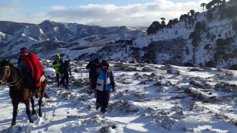 Es que personal de bomberos, policía, de parque nacionales y de salud, tuvieron que recorrer más de 15 kilómetros con varias condiciones climáticas en su contra: había nieve, barro y tuvieron que caminar durante la noche.