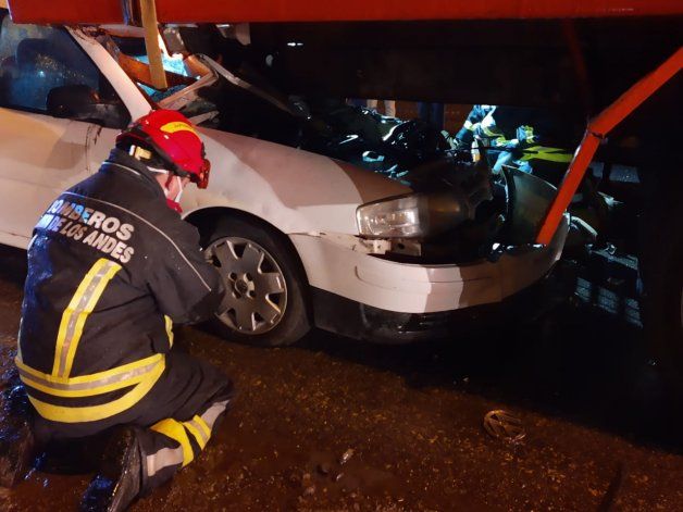 El accidente, que podría haber terminado en tragedia, sucedió el viernes pasadas las 20, sobre Ruta Nacional 40 y Avenida Lonquimay, en la localidad cordillerana. Según los testimonios de los involucrados, el hombre que circulaba a bordo de su camioneta Volkswagen Saveiro, no se percató del camión con caja abierta a unos metros, que esperaba el cambio de luz del semáforo, e incrustó la trompa de su vehículo debajo de la batea del camión.