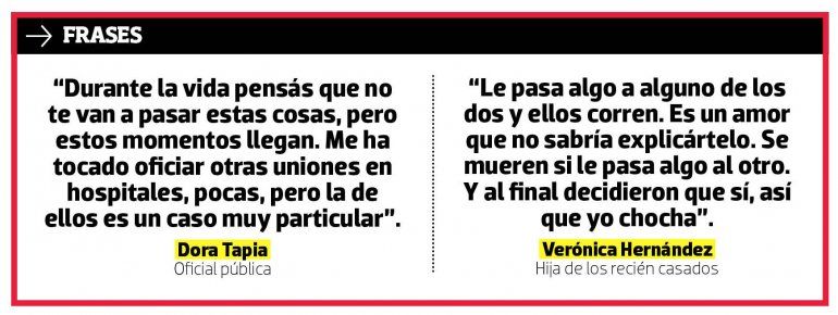 El evento congregó a la familia por una situación agridulce, pero logró elevar los ánimos de quienes se encontraban en el segundo piso del centro de salud. La idea se logró concretar gracias a los trabajadores de la clínica, quienes presenciaron por vez primera un casamiento en ese entorno.