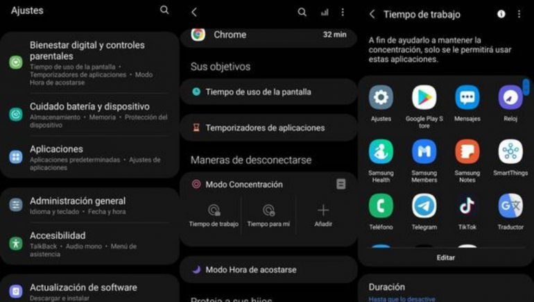 - Seguidamente, ubicá la pestaña “Modo Concentración” e ingresá a “Tiempo de trabajo”.