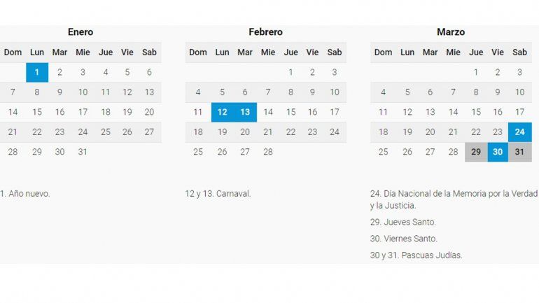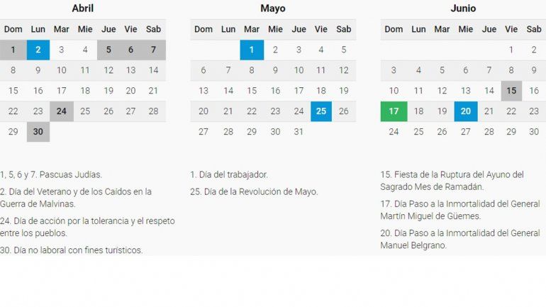De acuerdo al calendario establecido por el Gobierno Nacional, este año los días no laborables puente serán el 30 de abril, 24 de diciembre y 31 de diciembre. Son tres lunes que anteceden a los feriados del Día del Trabajador, Navidad y Año Nuevo, respectivamente.