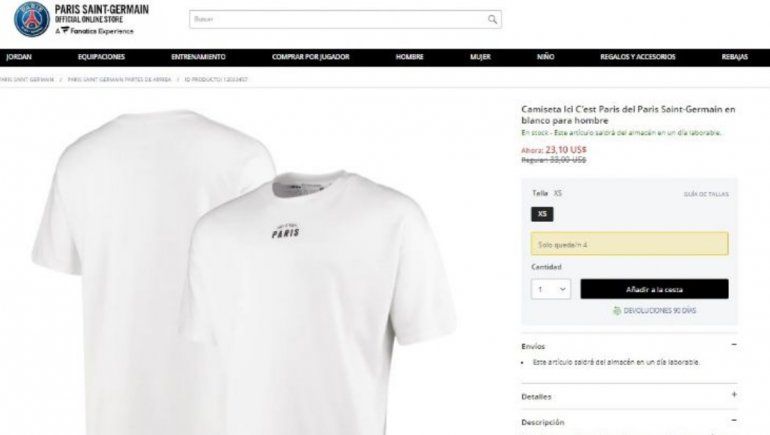 Por su parte, la página web oficial del PSG en el siguiente enlace, también hay un modelo muy parecido, aunque con la inscripción “Ici c'est Paris” en letras más pequeñas.