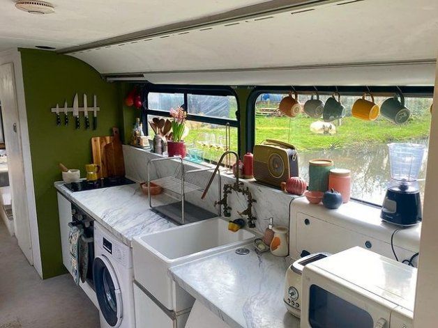 ¿Cómo es por dentro? En el piso de abajo hay una cocina competa con horno, microondas, heladera, lavadora y una mesa para tres personas. Además, allí está el living, que cuenta con una chimenea a leña y un pequeño escritorio, según Insider. La parte de arriba no deja de ser sorprendente. Junto con una cama matrimonial (con sus respectivas mesas de luz y una TV) hay una bañadera antigua y un amplio vestidor para guardar la ropa y cambiarse. Allí no hay cortinas: quieren aprovechar y disfrutar de la luz solar.