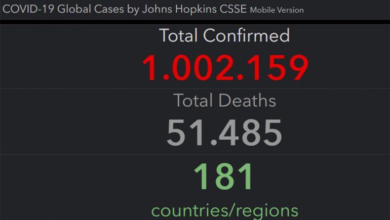 La pandemia de coronavirus superó este jueves el millón de personas infectadas en el mundo y también sobrepasó los 50.000 muertos, según las últimas cifras del centro de monitoreo de la Universidad Johns Hopkins.