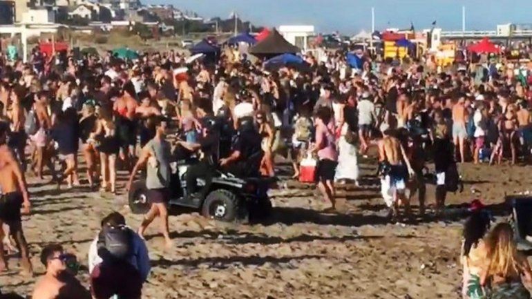 La Policía tuvo que actuar en una playa de Pinamar, en Buenos Aires, y dispersó a cientos de jóvenes que se encontraban incumpliendo las medidas de distanciamiento social y el uso del barbijo que rigen por la pandemia del COVID-19.