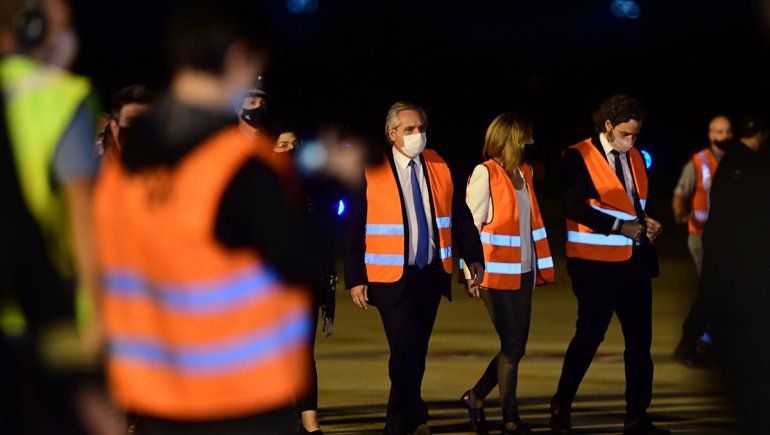 Pasadas las 19, el jefe de Estado presenció la llegada del vuelo 1051 de Aerolíneas Argentinas que trajo de Beijing un millón de dosis de Sinopharm, por lo que esta semana se alcanzaron las dos millones de unidades que arribaron al país desde ese destino, según se informó en un comunicado.