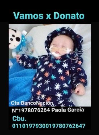 Una emotiva historia para contar en Navidad y para informarle a la sociedad que hay una personita que necesita ayuda. Donatto nació sietemesino y con síndrome de down y otra enfermedad complicada. El bebe cipoleño requiere de distintas operaciones y la pandemia complicó demasiado a sus padres comerciantes, cuyos bolsillos ya no resisten tantos gastos y debieron cerrar un local.
