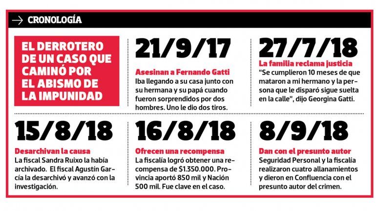 El supuesto asesino fue capturado tras un sigiloso trabajo de investigación que se vio favorecido por la millonaria recompensa que se ofreció de 1.350.000 pesos. La paciencia fue la clave para detenerlo ya que una vez que los pesquisas de Seguridad Personal lo identificaron, debieron esperar que el hombre regresara del interior neuquino donde se encontraba realizando changas de albañilería. Había una sola chance de capturarlo y se aprovechó.