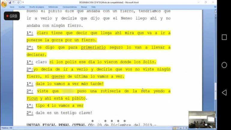 Por otra parte, una de las escuchas al padre del acusado, permitió conocer la existencia de un “testigo clave”, al parecer adolescente e hijo de una vecina que atestiguó la secuencia, que afirmaba haber visto a Neneo con “un fierro” y planeaba declarar ante fiscalía.