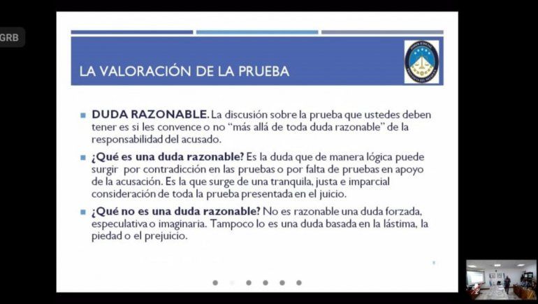"La discusión sobre la prueba que ustedes deben tener, es si les convence o no 'más allá de toda duda razonable' de la responsabilidad del acusado", remarcó.