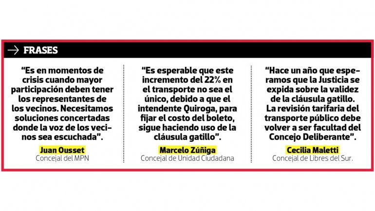 Concejales de la oposición cargaron con duras críticas contra la Municipalidad de Neuquén debido a un nuevo incremento del boleto del transporte público de pasajeros. A partir de mañana, el pasaje costará $26,17, un incremento del 22%.