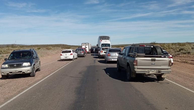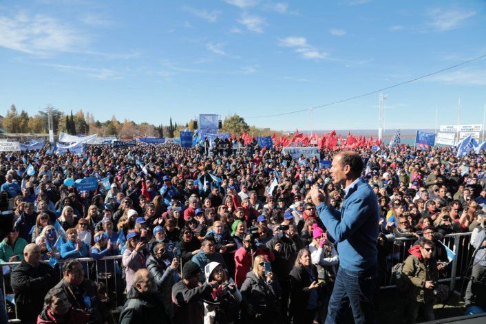 La fila de vehículos, camiones y traffics con militantes es tan larga como interminable. La gente se baja de los autos, cruza los alambrados en el medio de la jarilla y los alpatacos para “ir al baño". El baño no es otra cosa que la estepa neuquina, donde se escuchan gritos y bocinazos en la ansiedad por llegar a tiempo a El Chocón, donde los oradores ya estaban listos para el despliegue político y más candidaturas.