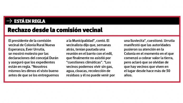 El concejal Luis Durán (Frente Neuquino) denunció irregularidades en un loteo que la Municipalidad hará en Colonia Rural Nueva Esperanza. Aseguró que falta información crucial sobre los beneficiarios y consideró que se trata de un negociado por la cercanía del barrio con la Autovía Norte.