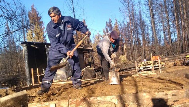Esos pinos los llevaron a un aserradero para hacer maderas que servirían en los trabajos de reconstrucción. “Las plateas quedaron hechas y gente de Neuquén y Buenos Aires tomaría la posta para seguir levantando las paredes y los techos. Nuestra idea es regresar para pintar y hacer los detalles finales de esas casas”, precisó.