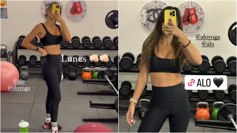 Primero, previo a empezar el entrenamiento, lució súper canchera con el pelo suelto, tapando su cara con el celular mientras le sacaba la foto al espejo. Luego compartió otra foto, ya con el pelo recogido, lista para entrenar.