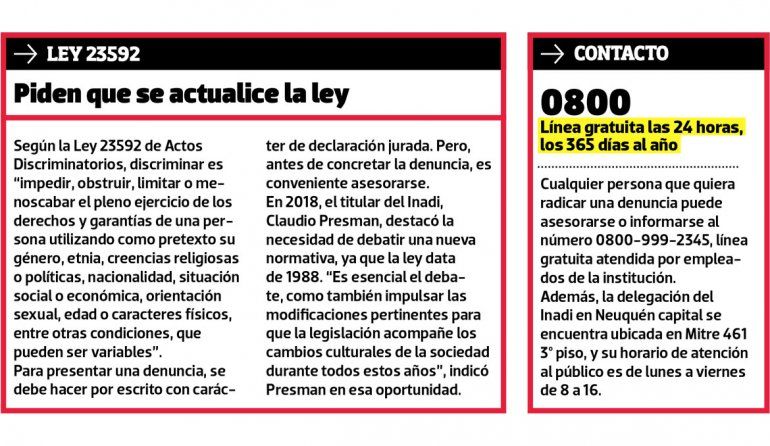 “Nosotros buscamos sensibilizar a la persona que causa un acto de discriminación, llamamos a audiencias de conciliación y muchas veces los casos se solucionan con un pedido de disculpas”, explicó la delegada a LM Neuquén.
