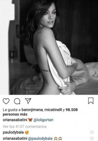 La hija de Catherine Fulop y Ova publicó una infartante imagen sin ropa, en blanco y negro, apenas cubierta con una sábana. Entre los miles de comentarios de usuarios, apareció el goleador sin decir una palabra: con un emoji enamorado, la clásica carita con los ojos en forma de corazón, Dybala le hizo un guiño a ¿su novia?