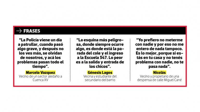 Indicó que, por la misma violencia que se vive en el barrio, “hay chicos que no van al colegio de acá sino al centro” y también dependen del transporte. Para ella, la inseguridad en Cuenca XV es preocupante, “pero está cada vez peor en todos lados”.