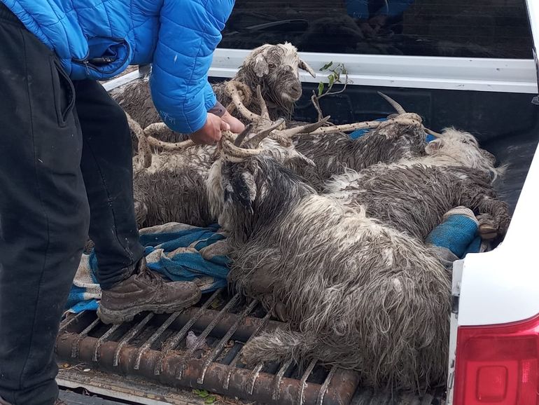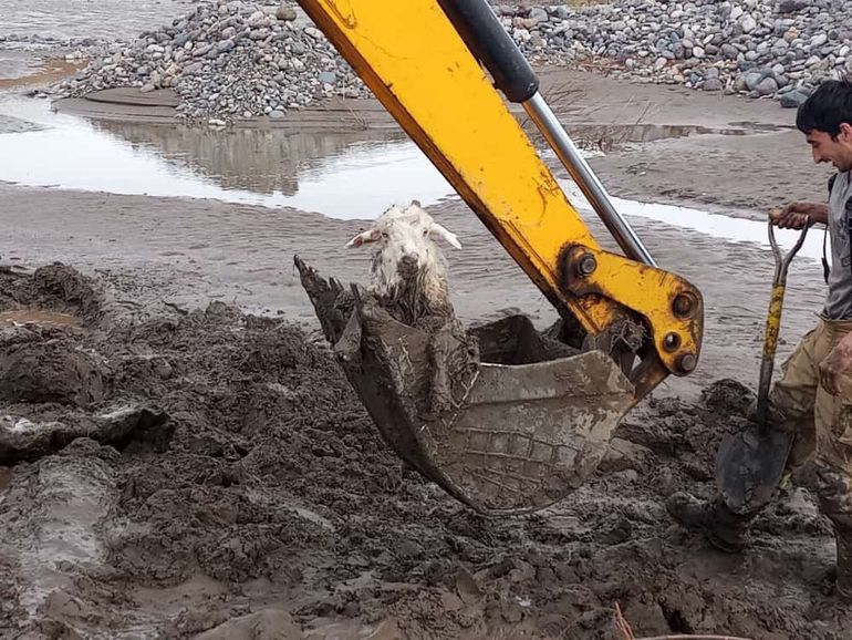 Ante esto, el "señor Vallejos" convocó a los Bomberos ayer por la tarde, quienes acudieron al lugar con palas para rescatarlas. Al llegar, sin embargo, notaron que las tareas serían mucho más complicadas y que las herramientas no alcanzarían. Así, debieron recurrir a la Municipalidad de Andacollo, que colaboró con una retroexcavadora para sacar a las chivas del pantano.