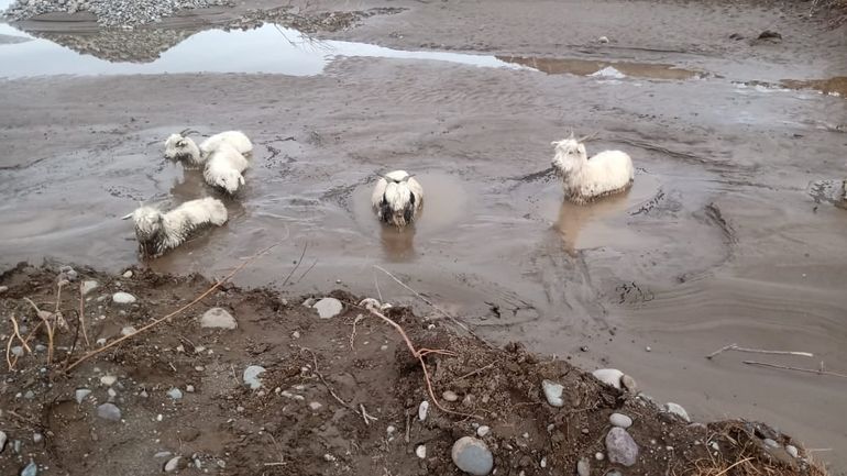 Los animales quedaron atrapados en medio del agua y el barro, y luego del importante temporal de lluvia que azotó a esa zona en los últimos días.
