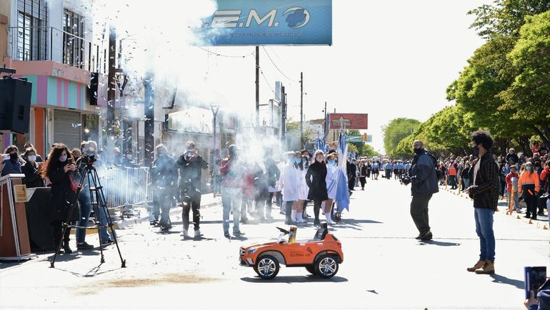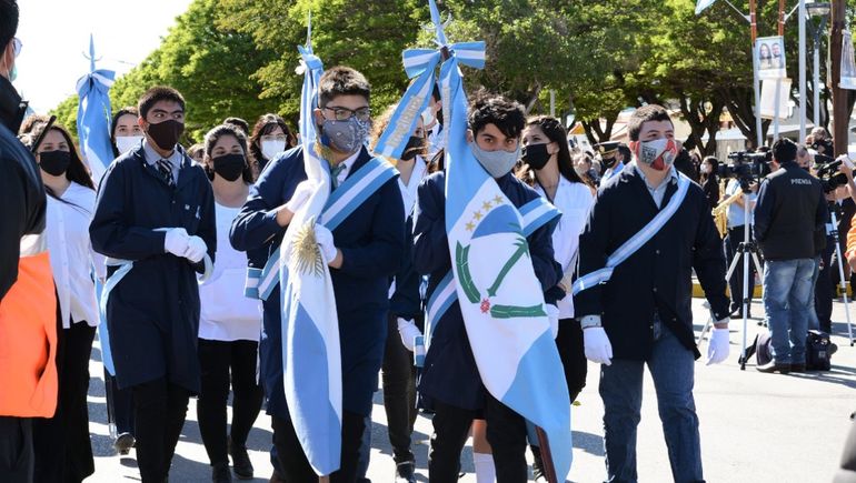Finalmente, las escuelas de la ciudad pudieron volver a desfilar con sus banderas de Ceremonia, quienes fueron secundadas por la Policía de la Provincia del Neuquen, Bomberos Voluntarios de Cutral Co, Veteranos de Guerra de Malvinas, y agrupaciones artísticas, deportivas y sociales de la ciudad.