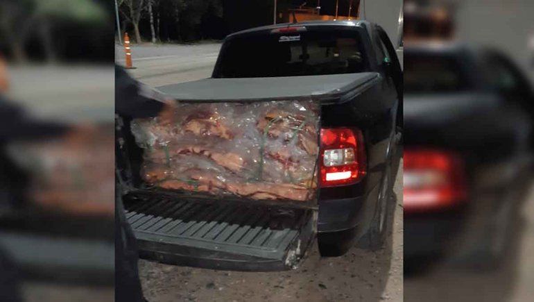 El procedimiento se realizó esta madrugada sobre la Ruta 22, cuando se detectó que una camioneta Saveiro llevaba en el interior de la caja y dentro del vehículo una gran cantidad de bolsas de nylon con carne, sin cumplir con los requerimientos necesarios para trasladar esa mercadería.
